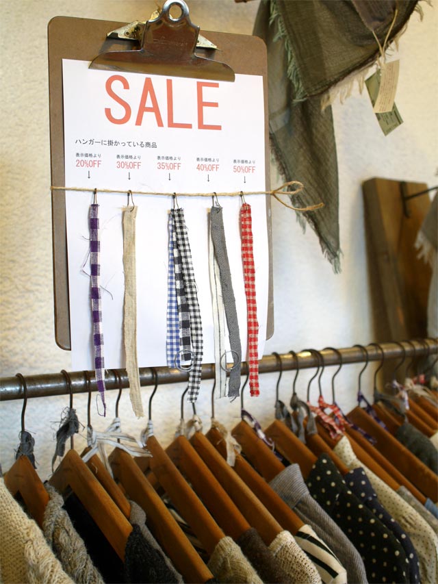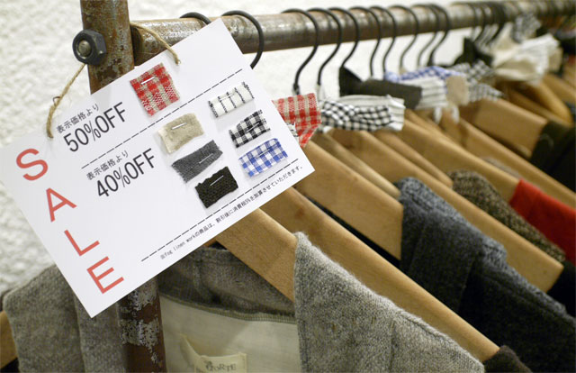 | □ 2010/1/4 本日1月4日(月)よりSALEを行います。 fog linen workの服、バッグ、スカーフなどを40%〜50%OFF、その他のブランドの服やブーツ、雑貨なども30%〜50%OFFにて販売いたします。 在庫数に限りがありますのでお早めにおこし下さい。 |