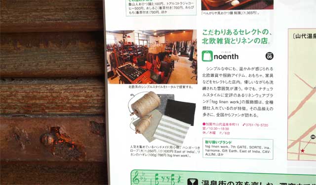 | □ 2009/11/20 金澤12月号の巻頭特集「そうだ温泉にいこう!」に山代温泉街の雑貨店として紹介していただきました。 山中、山代、粟津、片山津各温泉街の素敵な旅館や飲食店など、多数掲載されております。 山代温泉にお越しの際には、ぜひお立ち寄りください。 ------------------------------ 金澤 12月号 葛熨倶楽部 076-226-8222 価格:680円(税込) |